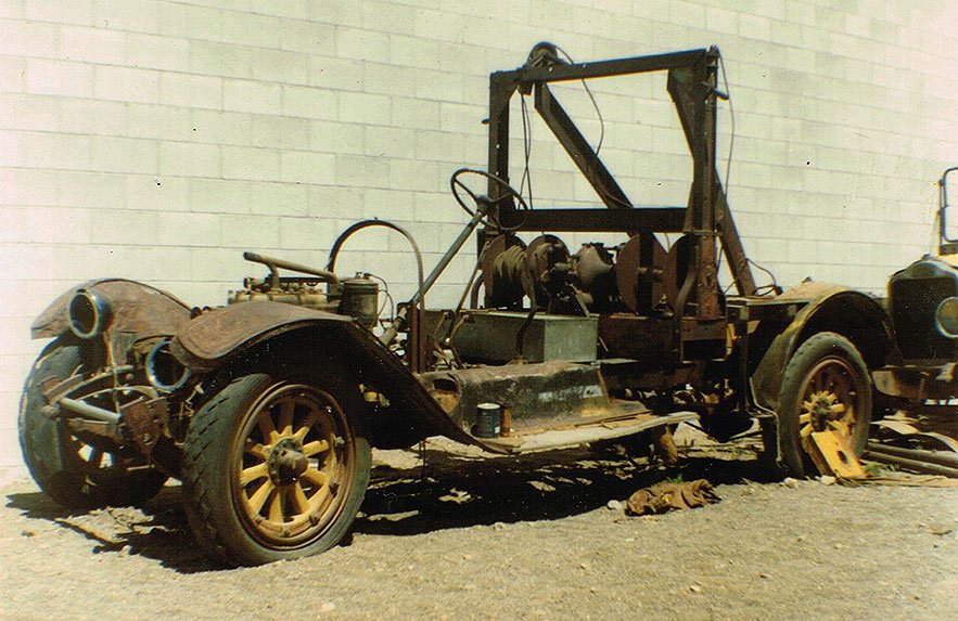 I see a caption: "1931 Indiana Bell Telephone Company tow truck (Bass Photo Company Collection, INDIANA HISTORICAL SOCIETY)" for one source. A large fleet of vehicles may have justified their own wrecker. It is a White with a similar chassis to the Yellowstone buses with 24" wheels and the same fenders. The typical gas lights were replaced by Model T headlights. The body work looks like around '26.