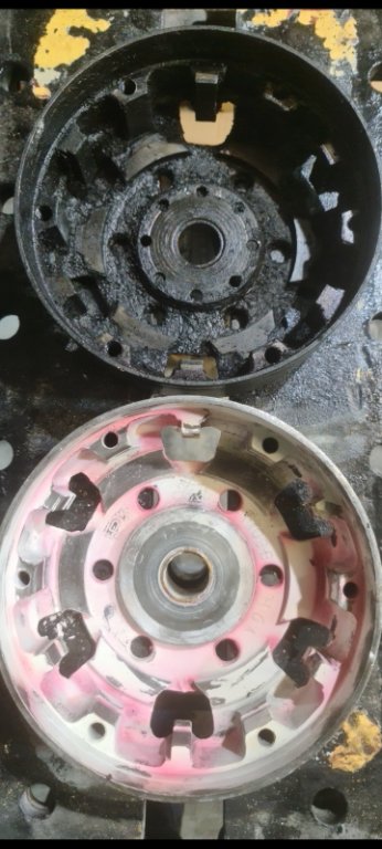 Did you put the 6 clutch shoes back on?(not on lower drum pix)Myxr6turbo wrote: ↑Sun Aug 21, 2022 5:07 pmHere is the old and new drive plate. I hope I don't have to pull the engine back out. It's been out for 12 years.