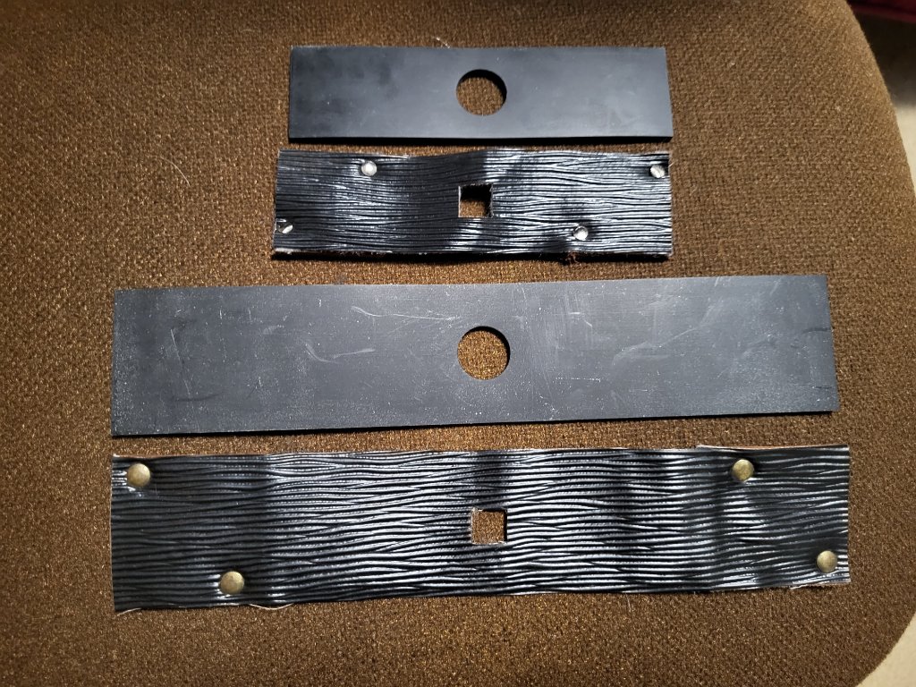 Perhaps you should order a set of leather pads from Snyder’s as well as a long rear square headed bolt and nut for tightening the leafs together. The all leather pads might be more satisfactory than the vinyl/leather pads you bought before. You may be able to return the vinyl/leather ones to the vendor for a refund.