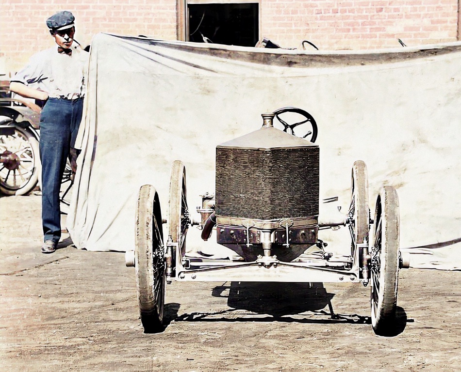 Below, (from the “Motor Age” article above) the final version of the racer. The photo was taken by Ford Motor Co. during September, 1907. The person in the drivers seat is often mis-identified as Frank Kulick, but is actually longtime Ford employ August Degener: