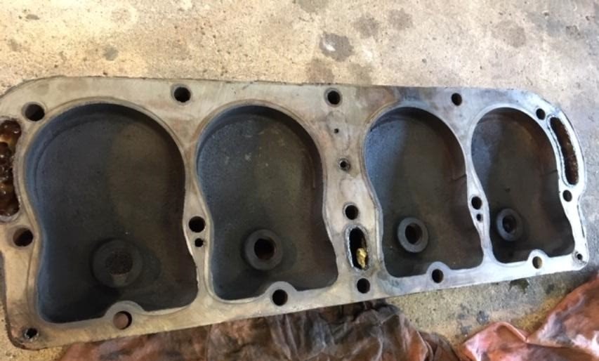 Here's the news as of today, the evidence shows that the motor has been recently rebuilt with new .060 pistons and valves, and is very clean, and the two weepy spots looks to have been repaired at some point and tiny holes have re-emerged. The head was clean and crack free and so is the deck.