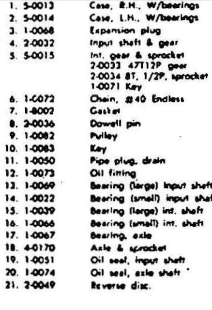 I am mainly looking for the 2 piece pulley for the motor shaft and the gear box pulley with the reverse disk mounted to it.