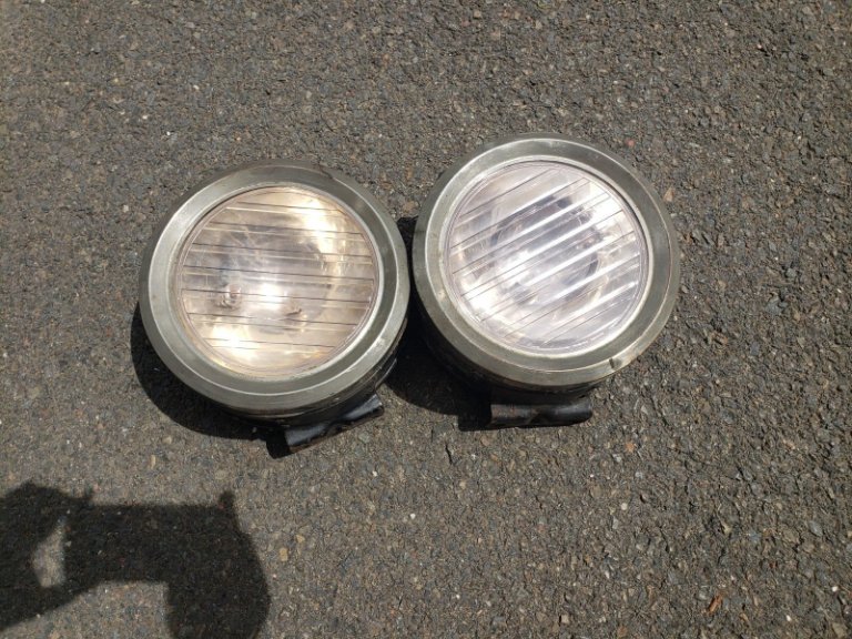 The "Other" lights that came on the speedster were the "guide" tractor lights Wayne, they were 8-1/2 inch (Smaller) and plain steel front bezel , much more industrial looking. I posted way back when when I first got the car . I agree fully with your description of these . I am hoping I can orient the brackets horizontal and switch things around inside so the reflectors and lenses are oriented the proper way . On this Duo-lamp style, is one socket for a running light of a different color ??????