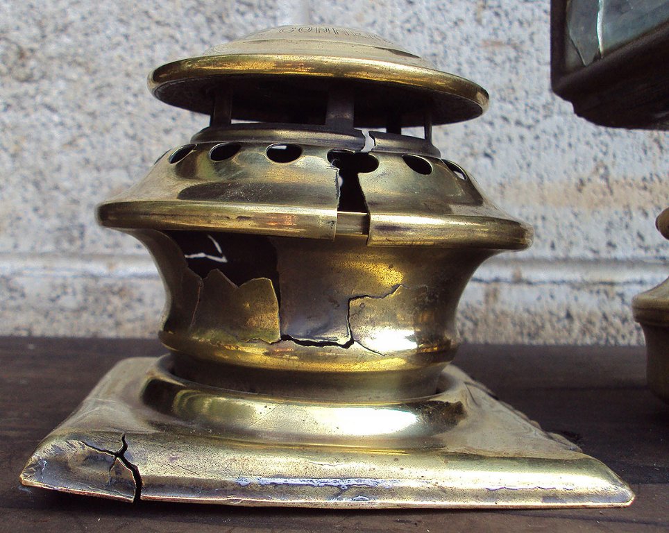 Fall colors ! Rain overnight rinsed off most of the dust Lizzie was wearing. Through the summer, brass has tarnished lightly, turning multiple colors. I enjoy this "patina" as a harbinger of fall, like turning leaves on the trees. It's also the right amount of tarnish, enough to feel really gratified when polishing, and not so much as to be a tough job.