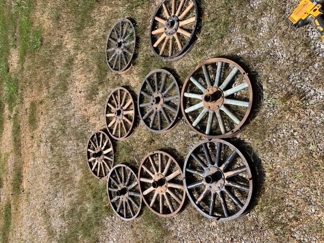 Here are 21” wood wheels. Fair to good. Hubs look ok. 4 rear 5 front.