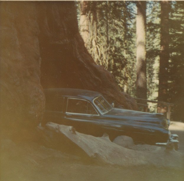 If that's the Wawona Tunnel Tree, it is now a big log.! I first passed through it in 1945 with my parents in a 1936 Ford. Also later in a 1931 Model T Phaeton in 1962. Then later in a 1949 Cadillac Fleetwood about 1979. Now the road is closed to cars and you take a shuttle bus. The tree fell down a number of years ago. It's a wonder it lasted as long as it did with the weight above the damaged trunk.