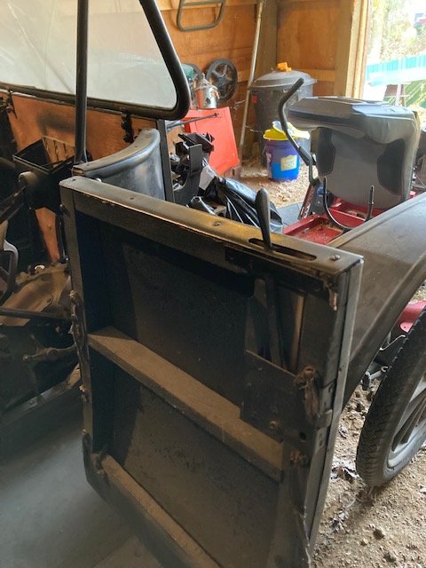 Here she is rolling out of the trailer at my shop. The wood is in great shape, has the sill reinforcements installed and except for a couple of fenders the sheet metal is good. Original engine 2946xx I'm wrapping up a resto on a 25 Touring and will start on this car next summer.