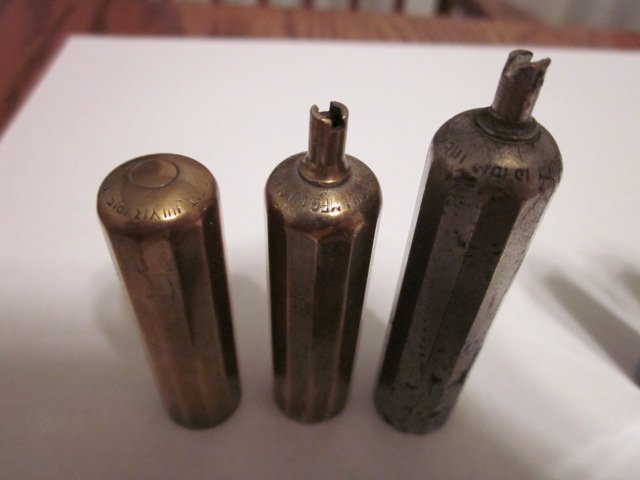buy a set of vintage DILL covers. They screw onto the thread that the valve stem cap threads onto, and the part that screws onto the stem slides up/down within the dill cover and stays put when tightened down...meaning that a stem that protrudes from 1/2" to 2" will fit inside these: They show up on eBay from time to time and I'd suggest you place a WANT AD in the Forum...you'll easily end up with a matched set of 4 and never worry again about a car with 4 completely different length tube stems...the DILLs will adjust and fit them all