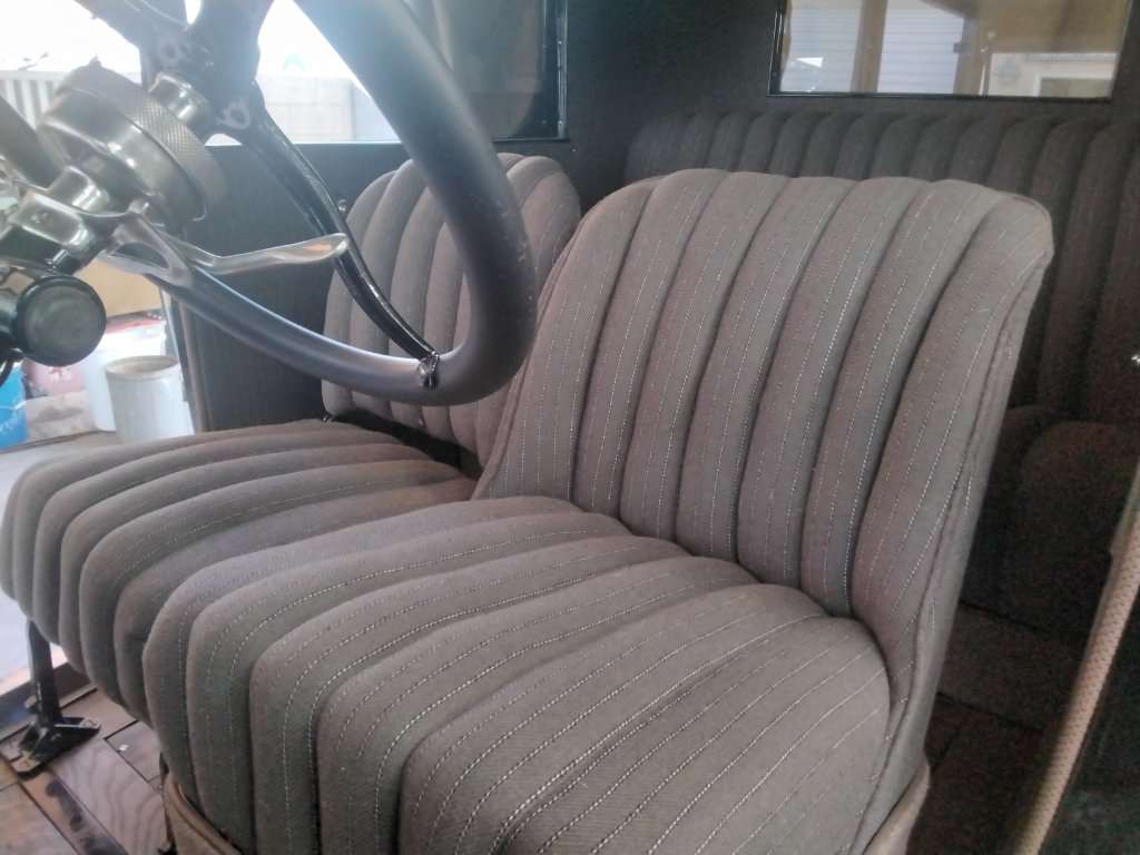 I just started to install the upholstery for my 1927 coupe from Classtique. This is the first time I have installed any upholstery, so I have had a lot of questions. Mike is helping me.