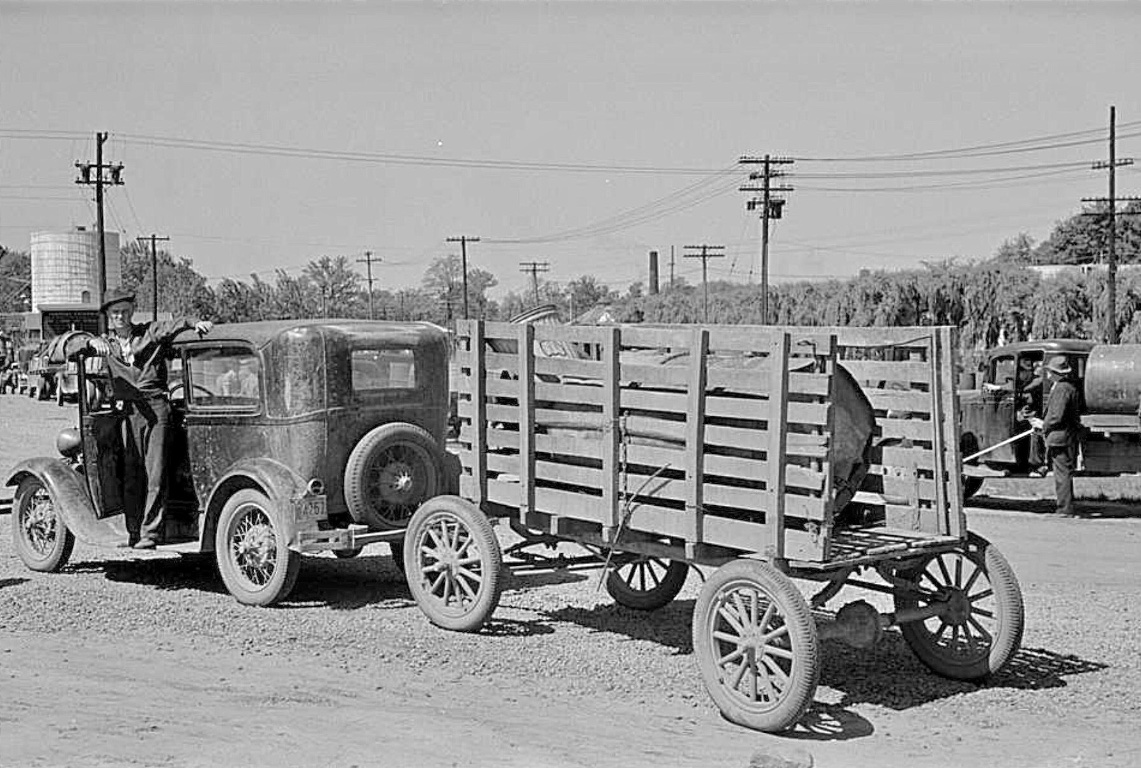 In about picture 10-12 from top, with the later cars pulling home made Model T trailers with barrels. It looks like it is a run on beer at the brewery. That must be right after beer could be sold again. That may be beer hops growing in the background .