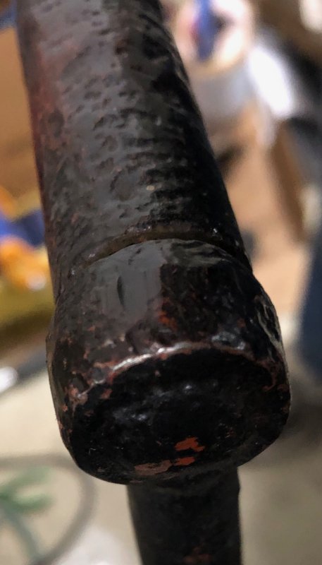 Remove the old pin that was riveted. Then clean up the bore at the end of the crank handle, insert assembly and re-rivet