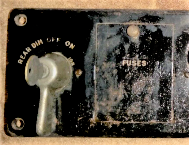 In internet searching for a REAR position on a ignition switch I found another possibility. If you look closely at the bottom image the ignition switch does have a position left of DIM. Also the gauges appear to have the same logo's as the dash in question (Nation Gauge & Equipment Company)