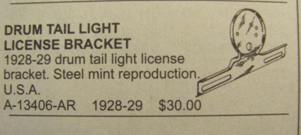So I fab'd one using the repop Synders 28-29 drum license bracket, cut the sides away, and drilled hole and cut straight sides to make that 'oblong' hole for the lamp socket and to clear the rear lamp bump. The sides of the 28-29 Model A bracket are narrow, but just enough 'meat' to drill holes for the nuts to secure the lamp's studs. Works, looks 'almost' authentic![]()