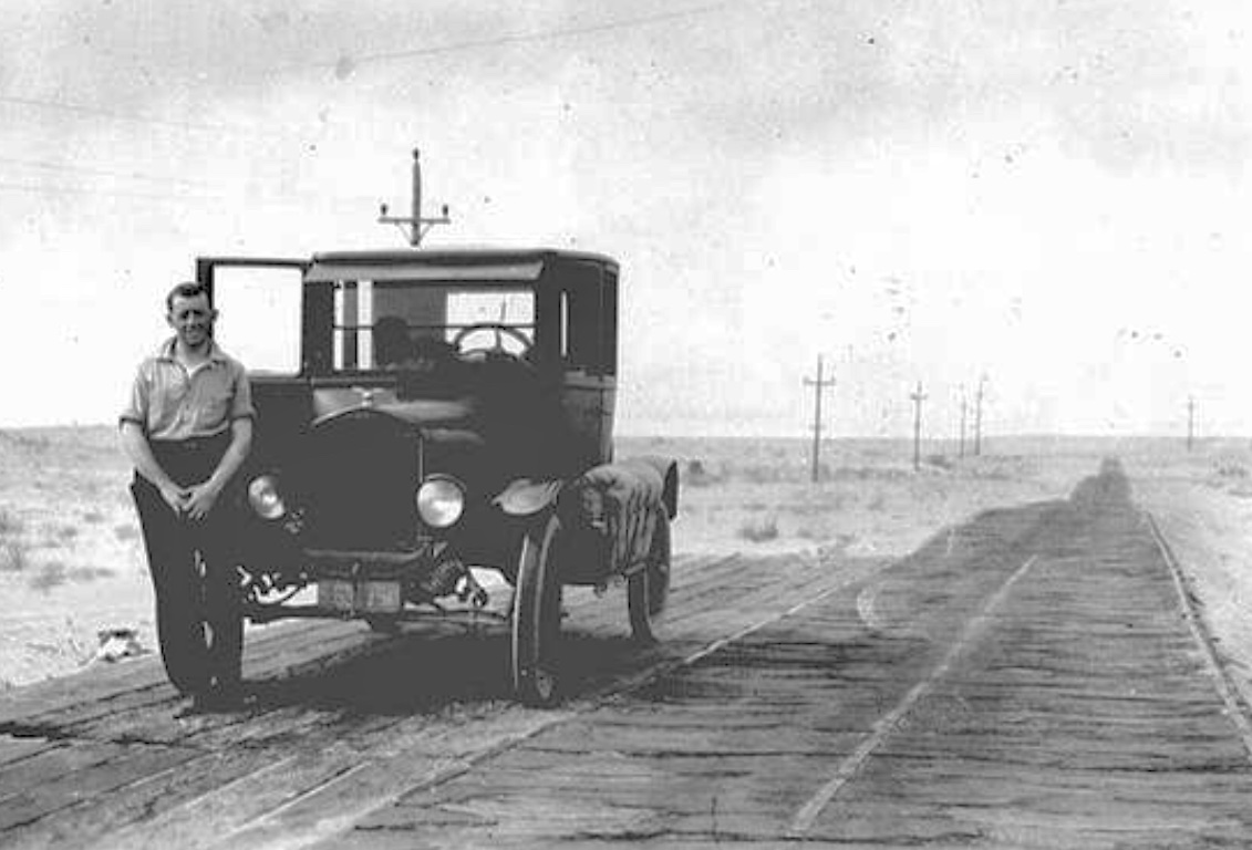Photo # 10 appears to be the "Plank Road" which crossed a reach of sandy desert between Los Angeles and Phoenix (?)