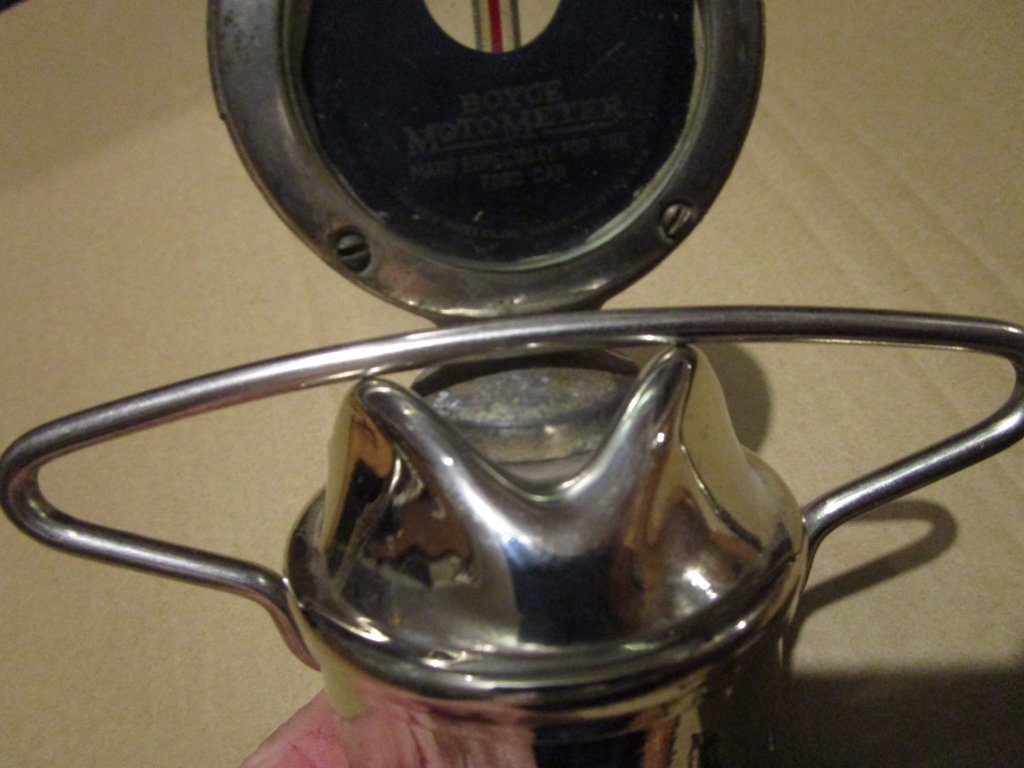 I have for sale several NOS Boyce Moto-Meter flip radiator caps. For years, I used to buy a couple of these each year from a vendor at the Chickasha pre-war swap meet and re-sell them on e-bay. I thought they were all gone as none of them had been there for several years. Last year at the swap meet his family was selling the last of his collection from his estate. There was a small box of them that they found buried in his stuff. I bought all of them. When these are gone there probably will not be any more of the NOS caps.