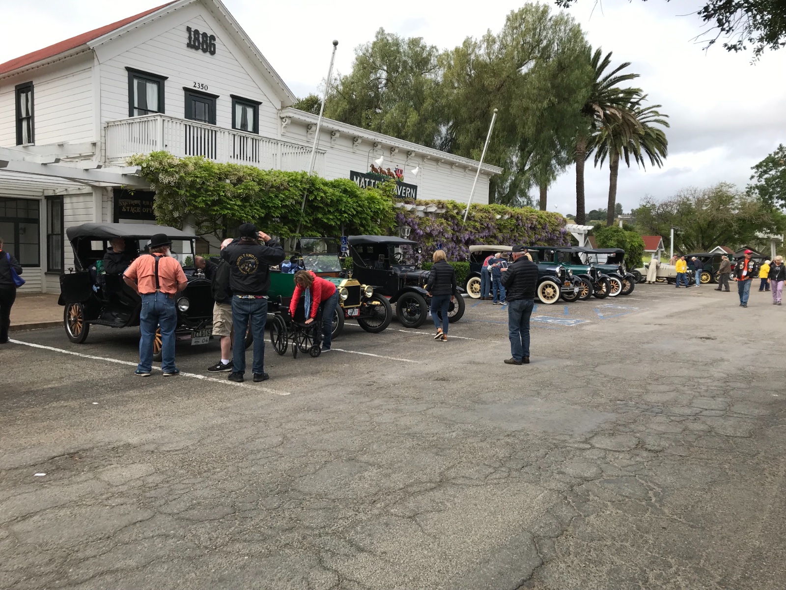 The tour ended yesterday and everyone is headed back home either last night after the banquet or early this morning. There were 3 guys that drove their cars from SoCal to the tour and are on their way back home now. That's about a 200 mile run in some sort of not nice traffic as they get close to home in Orange County. Dave Seiler, Wood Spoke shop, Sonny Bishop, Montana 500 fame, and John Bothwell in his flawless '15 touring.