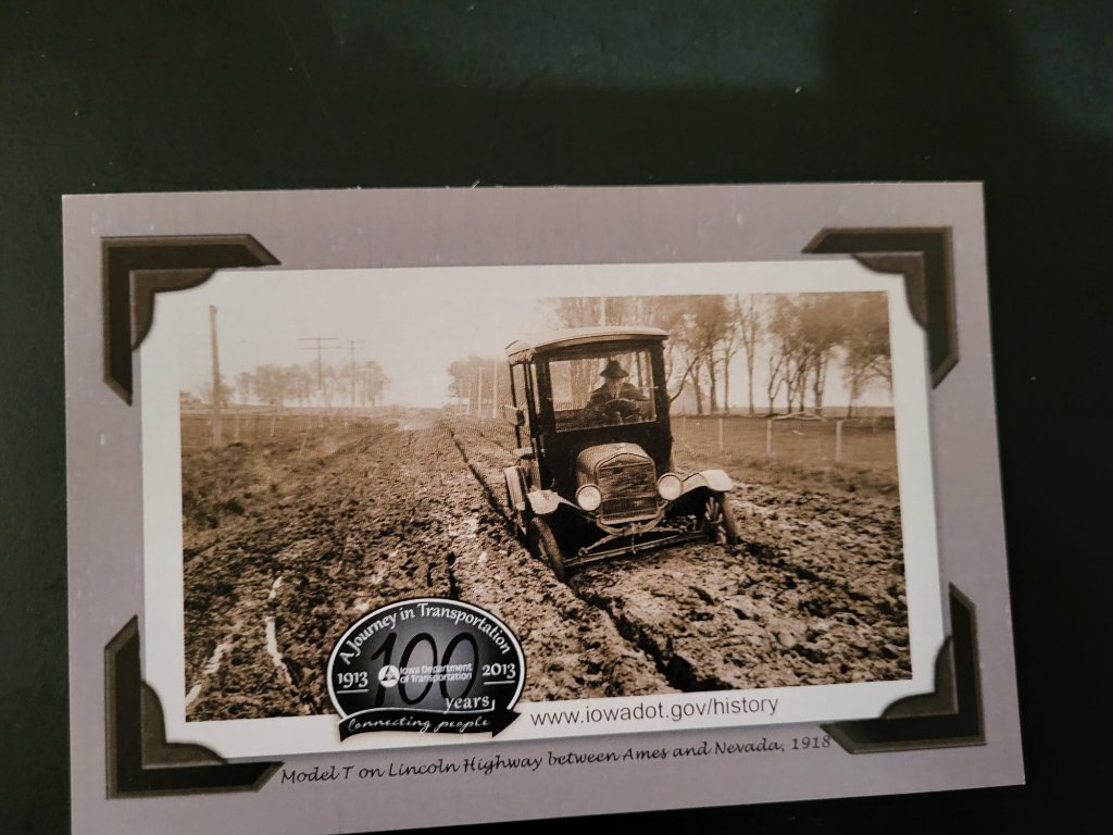 How vehicles and roads have changed! The Lincoln Highway was the first transcontinental road for automobiles in the United States. I live in Ames, and I drive on Lincoln Highway/US30 to near Nevada where we are restoring my 1927 coupe in my son's garage.