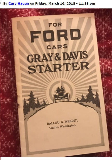 In my extensive old car electrical reference library I have a three booklets relating to Gray & Davis and the Model T Ford: