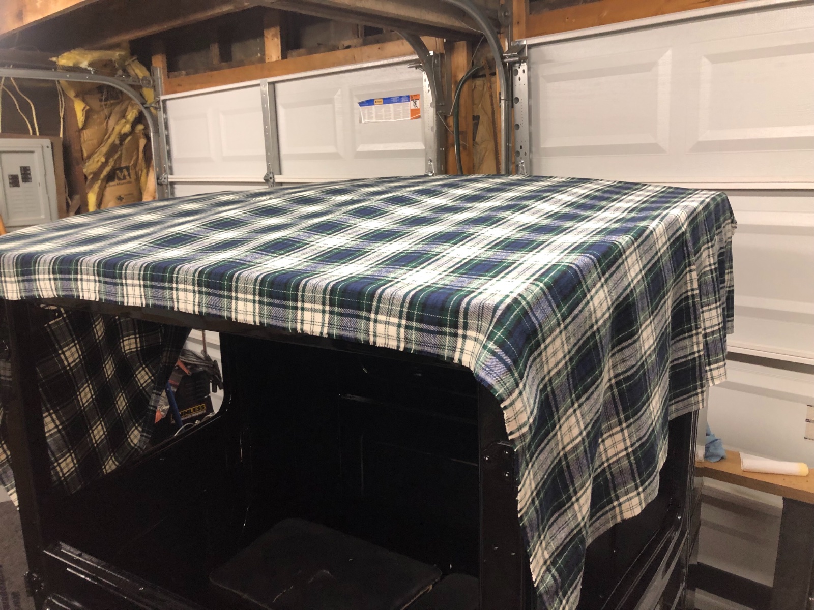 I have seen very little to no complete information/ instructions or pictures for that matter posted about installing the top wood and top for a 25-27 CLosed Cab TT Truck. So here we go. I’ve been working on mine for the last few weeks but made some major head way last night with the top cover. No the base material isn’t the stock muslin material but it’s just as strong and it’s my truck and I didn’t want to look up at black all the time! I’ll post what I have then keep updating on this thread as the project progresses. Some pictures will be sideways but that’s what I’ve got. Any bright enlightenments are welcome.