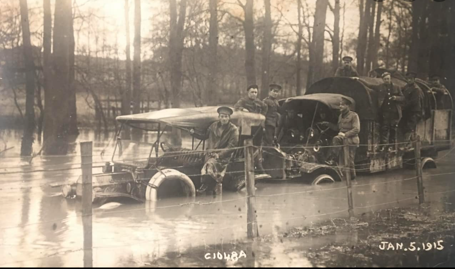 That's a photo of "Mechanical Transports in Salsbury Floods" from Project Gutenberg's "On the Fringe of the Great Fight" by George G. Nasmith.