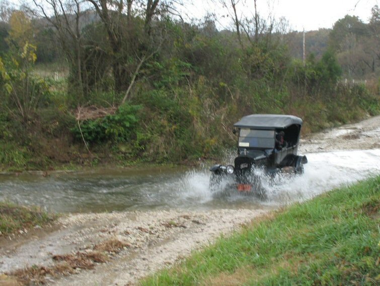 The guy who made the water crossing T was pretty sharp. I'm guessing he put a drain plug in his rear axle and ran used motor oil in the rear end. A drain plug at each rod trough would also be a good idea. Muddy water would still be a serious problem. He may have had clear water and a hard bottom. Leaving the fan belt off would help. It would be possible to de-water non-detergent oil by heating it in a pan over a fire. The heat would drive off the water, and grit would settle out as it cooled. As far as that goes, driving the car for tens of miles would drive off small amounts of water.