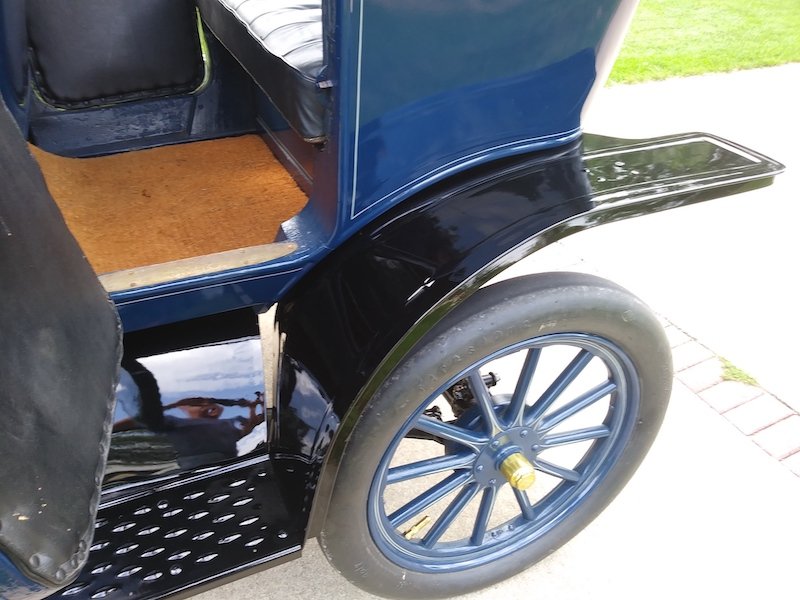 My 1923 Fordor is black and it stays black, from what I've been told. It's a driver but I want it to look its best when it appears in public. The old paint job is showing it age and it is worn in places and has runs and some small dents. I took it to our local body shop and the young man running it gave me a quote of $3500 which I thought was high. He said they would have to take it apart. After looking at his help I don't think the skill of his helpers could assemble it with the care that I would take. I just had my running boards powder coated and I had to replace bolts and a couple of the spacer blocks. I took care in doing it.