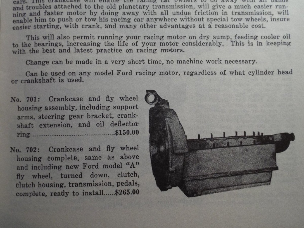 2) • Frontenac sold an aluminum pan/bellhousing combination listed in their 1929 catalog that allowed one to use an ‘A‘ Flywheel-? (I think). ‘A’ Clutch and transmission, with a T engine. My question is were these reproduced? Does anyone have one or know of one? -I Want to buy one!