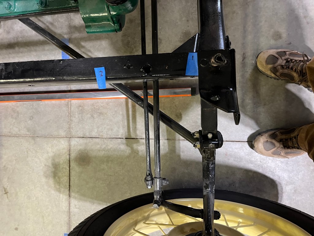 Two items are missing from this rebuild, the radiator and hood. Getting everything else sorted without any reference could be problematic. The advice to put everything together and tighten nothing is good advice, but add the radiator and hood to the mix. The radiator should be perpendicular to the frame rails. If it is, and the hood is a mis-fit, the body needs to be juggled to improve the fit. I know this adds to the work, but it may well lessen some heartache later on.