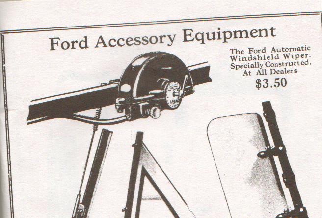 Of course, long before Ford offered factory accessories, the aftermarket was full of windshield wipers, many kinds of manual, some clip on over the open car windshield frame, some bolt mounted, some in power, either vacuum or electric!
