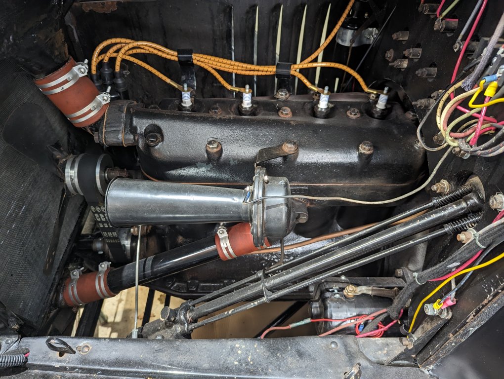 The car is in great shape but hasn't run for several years. Stored in a closed garage. I installed floating hubs from Birdhaven along with new driveshaft and new axles when I rebuilt the rear end - but new owner might want to check the rear end for safety's sake to ensure the work was done correctly (I am a shade-tree mechanic...). It has a large-drum Ruckstell rear axle. There is a "belly band" under the motor.