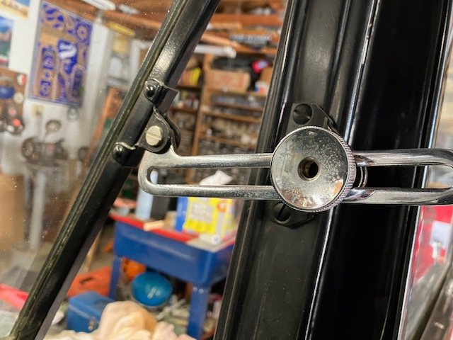 Thank you James. To further add to my confusion, both trucks( by serial number) are Oct of 1926 builds. I was told the green one was a ‘25, its not. So here are two supposed 1926 cabs built the same month with completely different screen adjusters. My green truck, like yours James, has the adjusting knob with male threads, the mating female threads being in the bracket that is riveted to the frame pillar. My black ‘26 has the bracket that is bolted to the frame pillar and utilizes a male stud. Having been restoring for nearly 40 years, I would argue that the attached pic shows a bolted up bracket that has likely never been removed or molested. The shown pic comes from the later build of the two trucks.
