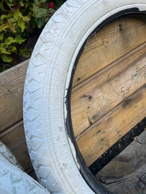 These is a set of white firestones, 2. 30x3 and 2 30x3.5. These are new unused tires, but are around 25 years old. I mounted 1 and it had cracks so I took it back off. Should be quite usable but that’s up to the buyer. $800 for the set of 4. Plus shipping. Kdmks AT at.net.