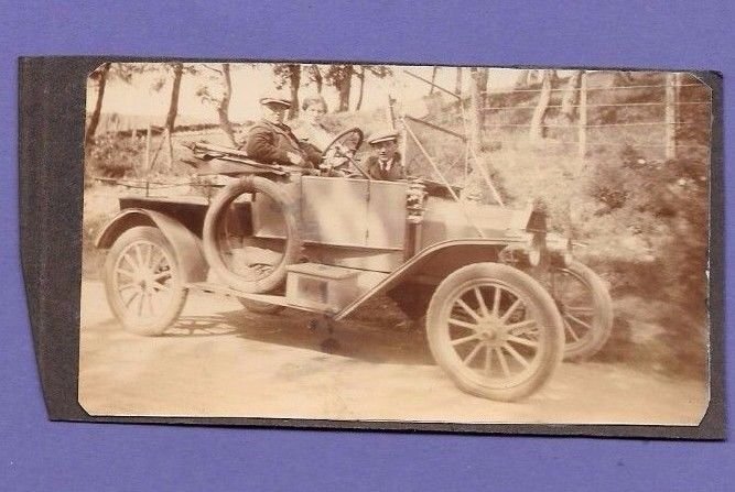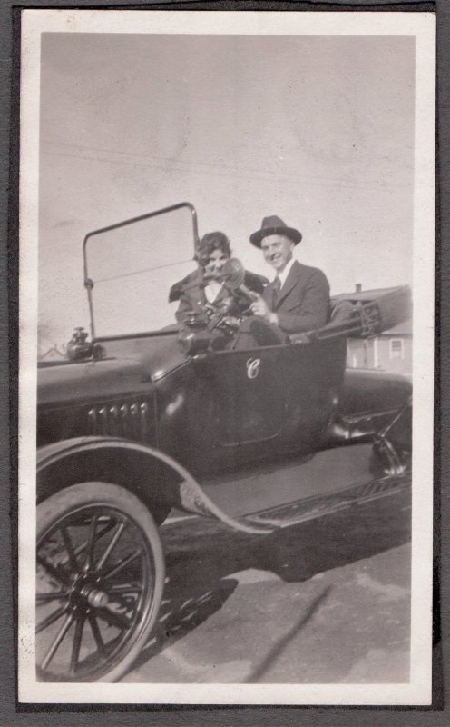 This last photo is a bit of a mystery to me. Is that a pet badger, teddy bear or dead gopher he is holding? It's staged to look like one of the youngsters is driving. I see a pair of feet under the far running board.