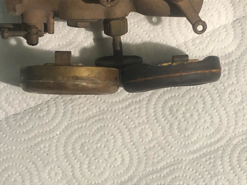 My first thought is that it's just the incorrect float, and that I need to get the right one. My second thought is that I can extend the hinge to raise what would be the right side of the float (in the picture), and move it more to the left (in the picture) allowing it to clear the carb body for a better closed angle and better drop. Any thoughts? Or did Kingston make what may be the only guys on the planet to hang the float at such a dumb angle.