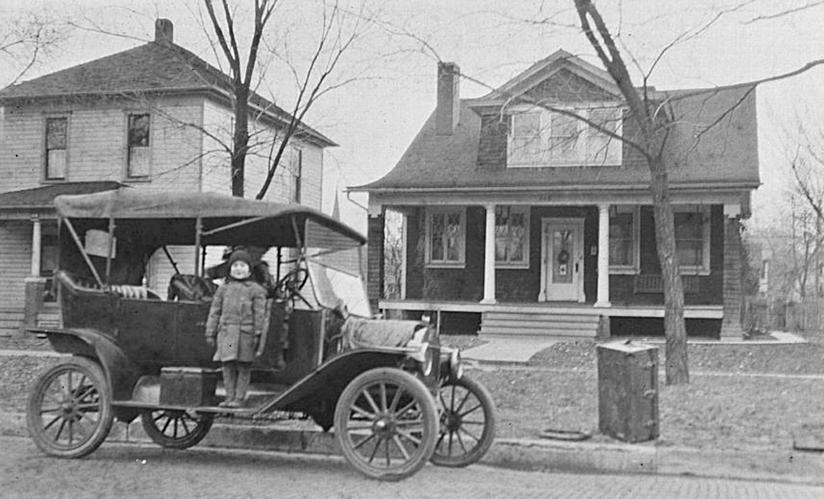 Occupants in the 1915 sedan (first photo) are vaudevillians Eddie Foy, Sr., his wife and his kids "The Seven Little Foys."