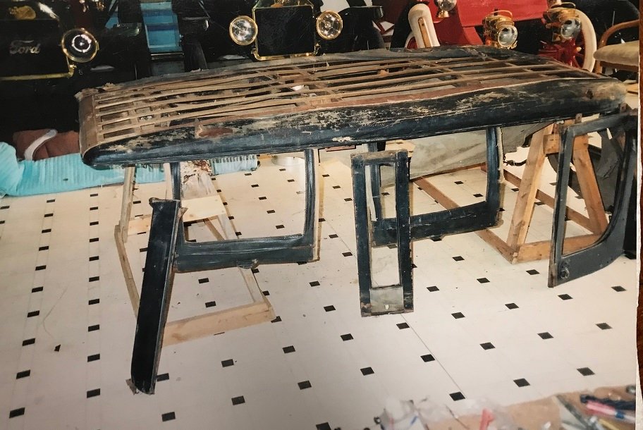Was helping Craig Beek organize some parts etc and came across some photos of a top he has (no longer on the Touring ). Did a bit of bit surfing the web and found some info about it. The photo's of the top were taken several years ago and the top is currently stored up in the rafters of his museum. Will pull it down and get some better photo's for serious inquiries. Craig indicted it was for a 1915 Touring with the rear brackets as shown in the photo and could fit up to 1920. I'm posting it for Craig was $1000 now $925+ shipping or pick up
