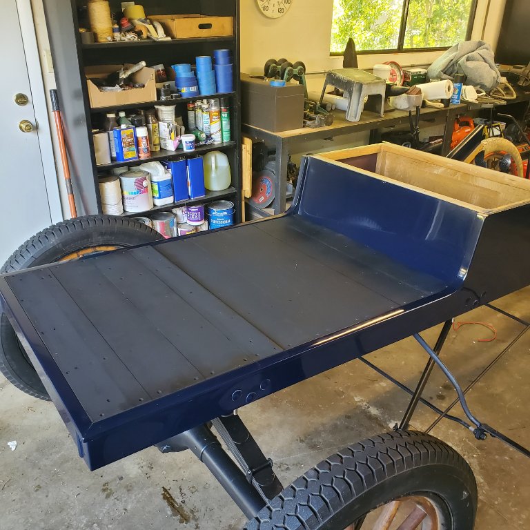 Beginning to reassemble my 1912 roadster as parts are being returned from the painter.
