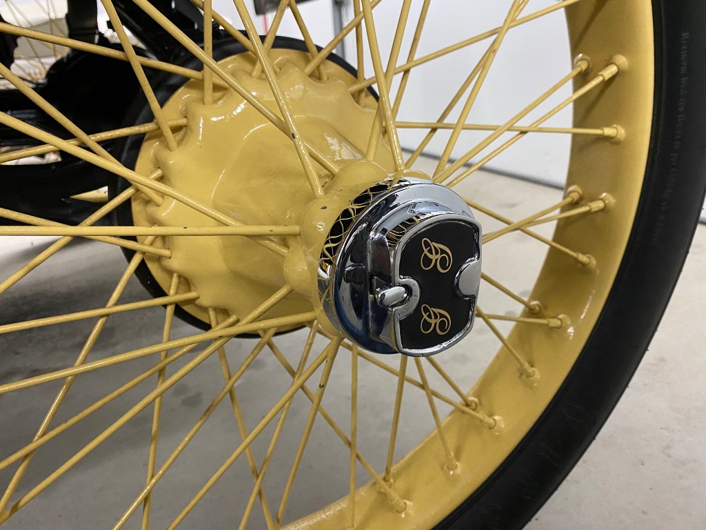 Really enjoying this thread. I have had a set of Budd parts for years. Have just committed to have the outer hubs laced into new rims. I am fortunate to have the correct front hubs to suit the Model T but the rears are Overland and will require the Model T taper to be installed inside the larger Overland taper. I do have one original rear T hub which I would consider selling to fund the machining work on the Overland hub? The T and Overland rears are different in shape with the Overland inner being round and the T one a Star shape. Looking forward to having a full set now that I have a plan. Wish my caps looked as fancy as the ones on that neat looking runabout.