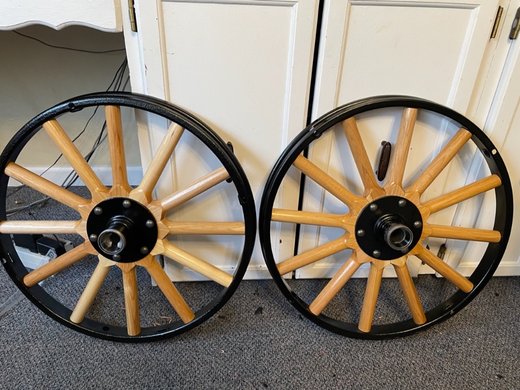At long last I respoked my wheels today. It went pretty smoothly. I need to peen the nuts and do a little paint touch up. The jig I made for drilling the holes straight worked perfectly.