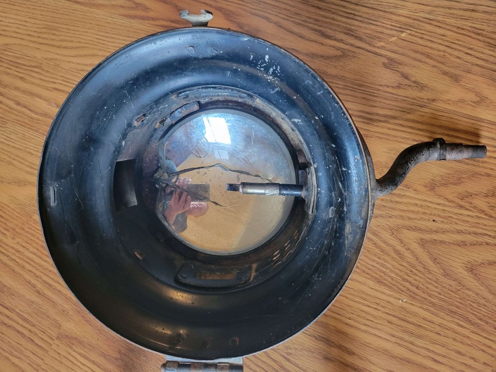 John Brown Model 16 acetylene headlights complete with mounting forks and burners. Just out of long term dry storage. Both housings are rust and dent free. Both chimneys are also dent free. One rim is near perfect and the other has soft dents that would be easily removed. No cracks in any of the brass or steel. One reflector is very good and the other is cracked. Both lenses need replacing. Asking $500 for the pair plus actual shipping from 54949. [image][/image]