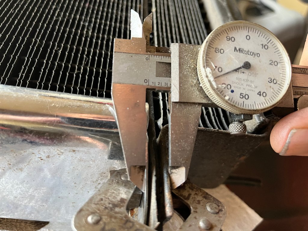 I would argue I do have this correct per the drawing, most radiators I have seen look like the mounting flange is a single thickness, on mine the top and bottom sides of the radiator are bent at right angles and soldered to the flange making the flange 3 thickness of metal, if that makes any sense at all, so to answer Frank's question "what is this" it's the lower side of the radiator.