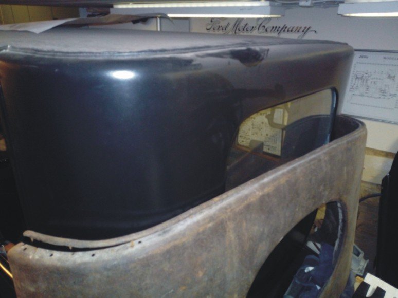 I have a photo in my files that I cannot post right now that shows the comparison of a later sedan to a Centerdoor. It shows a 1/2 round molding that covers the seam from the roof to the rear metal panel.