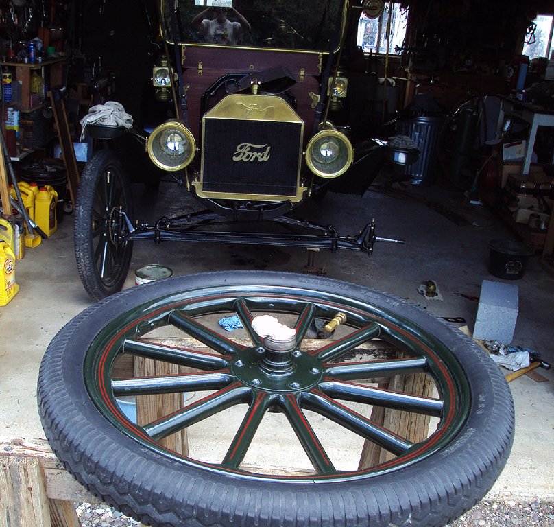 Preparing to pull the engine in my 1912 Comm Roadster to address magneto issues, make repairs to hogshead, and putting pan on a straightening table. I had hoped not to go to this length, but found it necessary. I hope my car turns out as nice as Richard's (who has been most gracious in answering my pestering questions). I have the headlights sitting on the forks while I clear a place to safely store them (man, my shop is cluttered up). Certainly, they will be out of the way when I go to lift the engine out. Fenders, splash aprons, and hood are at the paint shop. After I am done with the engine and it is back in the car I will finish my new Stutzman rebuilt wheels and get them ready to go to the painter.