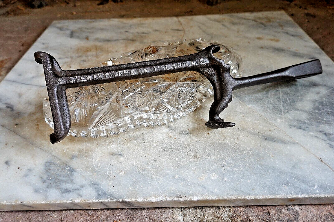For the detail on the Stewart On and Off....here is the patent and patent summary of use. The flat handle end is digging into the roadway to use leverage of the rotated wheel off the ground to pry off the tire and on with the tire. :