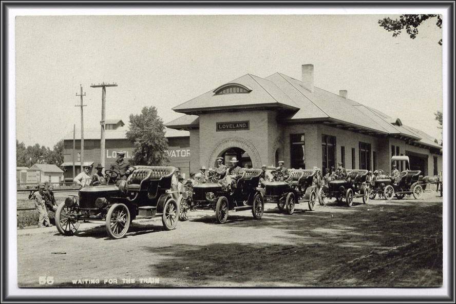 Before the big 30 hp Mountain Wagons made their debut, fleets of 20 hp Model F Stanley touring cars did the grunt work of hauling passengers up to the park and back down to catch their train. That depot as it exists today: 20 hp Model F Stanley touring car headed up Big Thompson Canyon to the Hotel