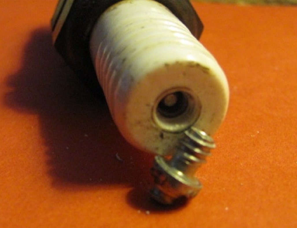Broken center electrode from pliers used to tighten the plug wire