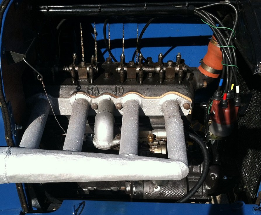 This is my speedster with a Rajo Over head valve that was manufactured in about 1923 with out the heat riser. The engine is coupled to a C 4 automatic. About 10 years ago I had the opportunity to dino the car and it came up to about 100 HP at the fly wheel. The engine is full pressure with insert rods and mains. Tom