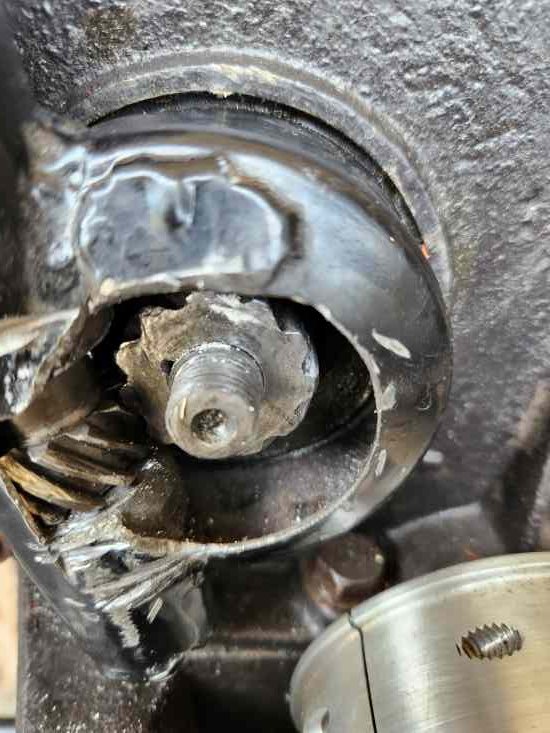 Somehow Get the gear spec's from Texas T's OEM - and then somehow find a BLANK unhardened gear to match - (Boston gear) with the same dimensions, pitch, angle etc... and bore and tap a 1/2-20 thread to fit? - And then harden it??? Complicated - costly- and getting that exact spec is highly unlikely- but worth trying
