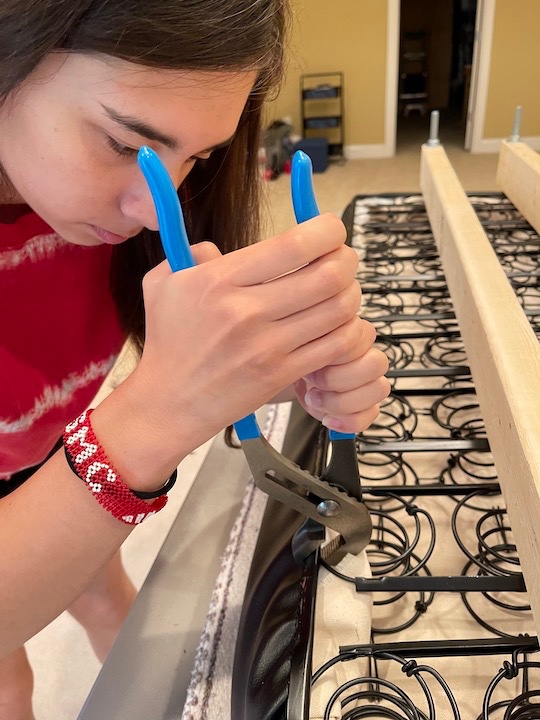 All the videos I've seen on how to crimp the edge of the seat bun are blocked by the person doing the work. Here is how we crimped the edge of the seat frame.