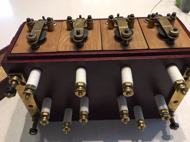 This is much later coil box, with switch on the box, but wiring should be similar to what Scott posted, the common is the lower strip in most coil boxes. Yours may have individual contacts wired together? instead of strip. The wiring in these later years would be In the base wood piece, running in slots in the wood base.